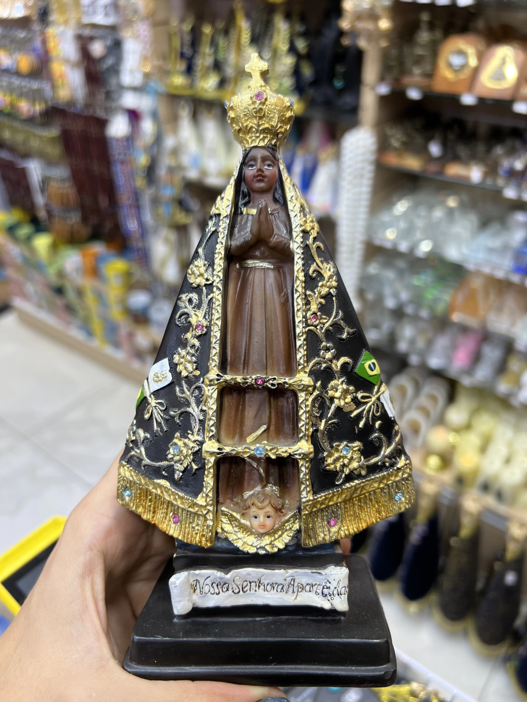 Imagem de resina de Nossa Senhora Aparecida 20cm. Com bandeira no manto